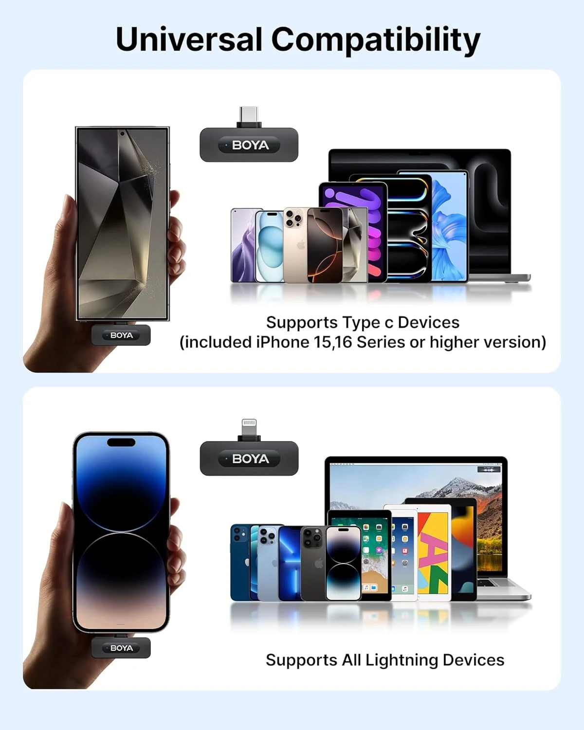 Type-C/Lightning design supports Android and iOS. With a sturdy build
