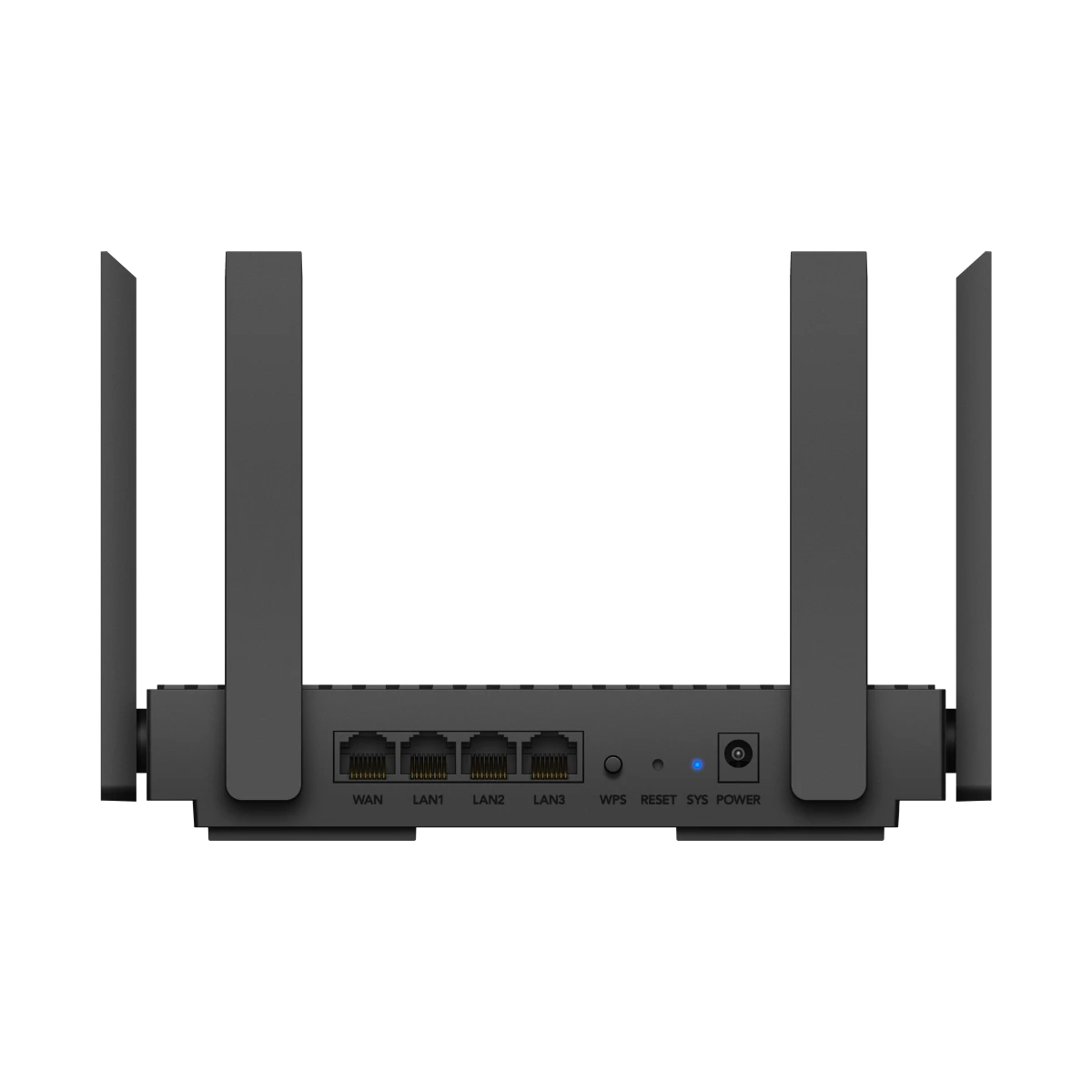 This router adheres to Wi-Fi 6 (802.11ac) standards and features gigabit LAN and WAN ports for high-speed wired connections. It includes 1 x 10/100/1000 RJ45 WAN port and 3 x 10/100/1000 RJ45 LAN ports, delivering 1000 Mbps data transfer rates.