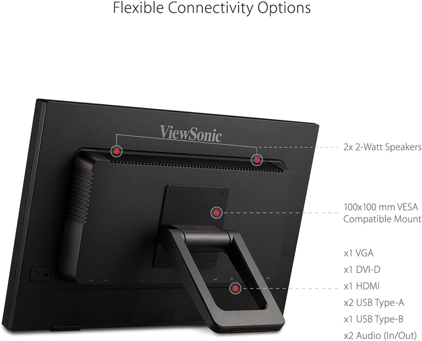 The monitor supports VESA wall mounting with a 100 x 100mm