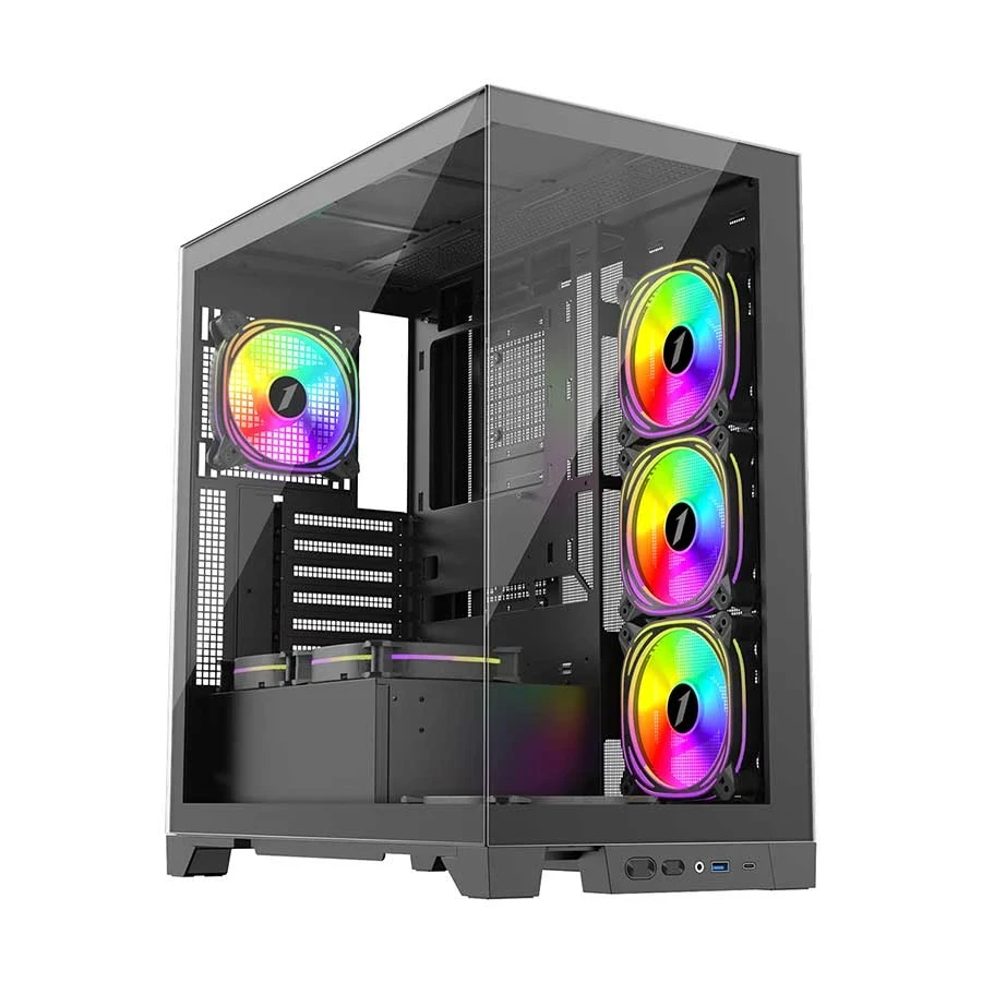 a hub/controller. Its tempered glass side panel and 0.6mm SPCC steel body offer