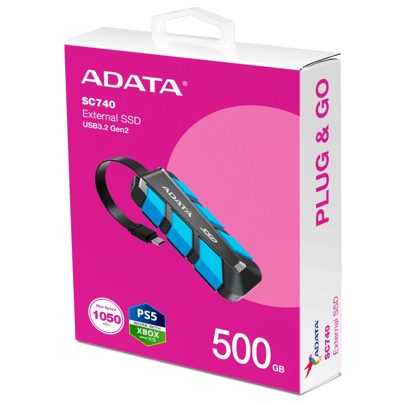 with the Adata SC740 500GB External SSD, designed for speed,
