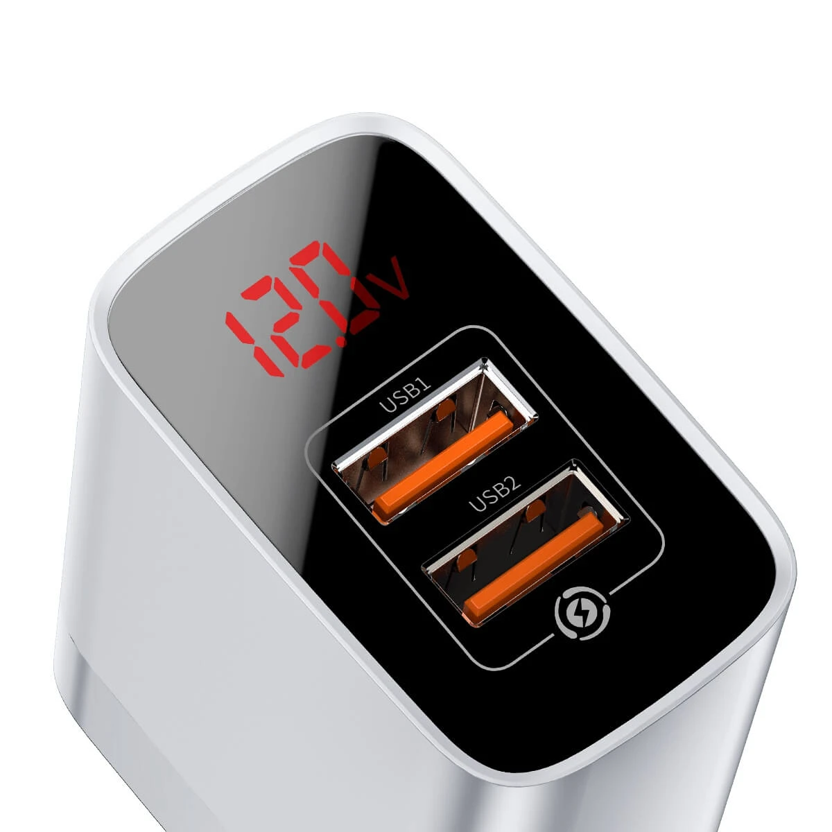 digital display that shows voltage and current. With Quick Charge