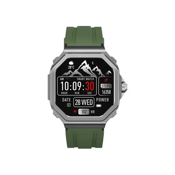 | Other Parameter | Waterproof Level: IP68 Charging time: 2H Life time: Use for 5-7days, standby for 30 days Product language: English, Simplified Chinese, German, French, Spanish, Portuguese, Turkish, Arabic, Italian, Russian, Polish, Indonesian, Dutch, Czech, Hebrew, Thai, Greek, Japanese, Traditional Chinese, Romanian, Vietnamese Notification Language: Text display Wristband size: Total length 220mm, adjustable length 145-190mm Appearance material: Main body: zinc alloy + spherical toughened glass Wrist strap: Olive silicone watch strap (Extra Grey Strap Included) |