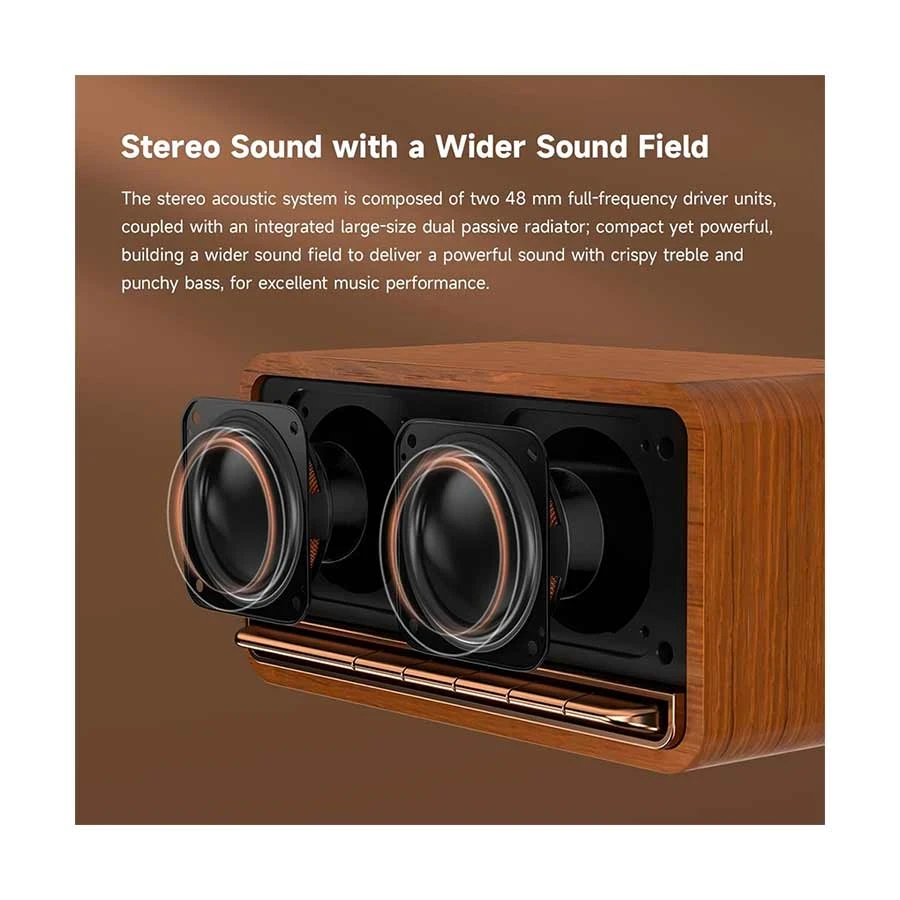 speaker that delivers powerful stereo sound in a retro-inspired