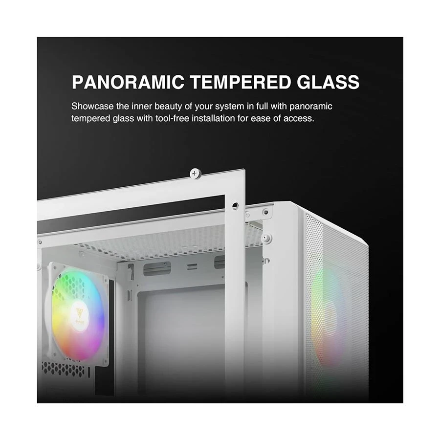 RGB Fine Mesh Mid Tower White (Tempered Glass) ATX Gaming Desktop Case is a