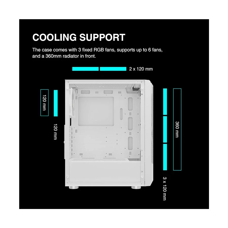 Size: 120mm Supported Fan Size: 120mm Lighting Fan: RGB Radiator Support