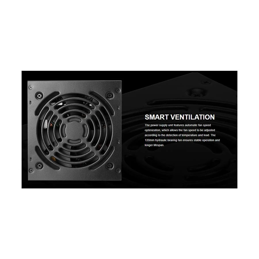compared to non-certified PSUs. The 120mm hydraulic bearing fan provides quiet