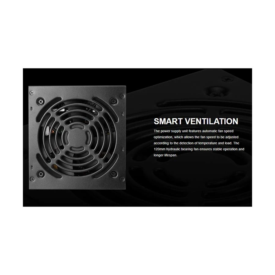 compared to non-certified PSUs. The 120mm hydraulic bearing fan provides quiet