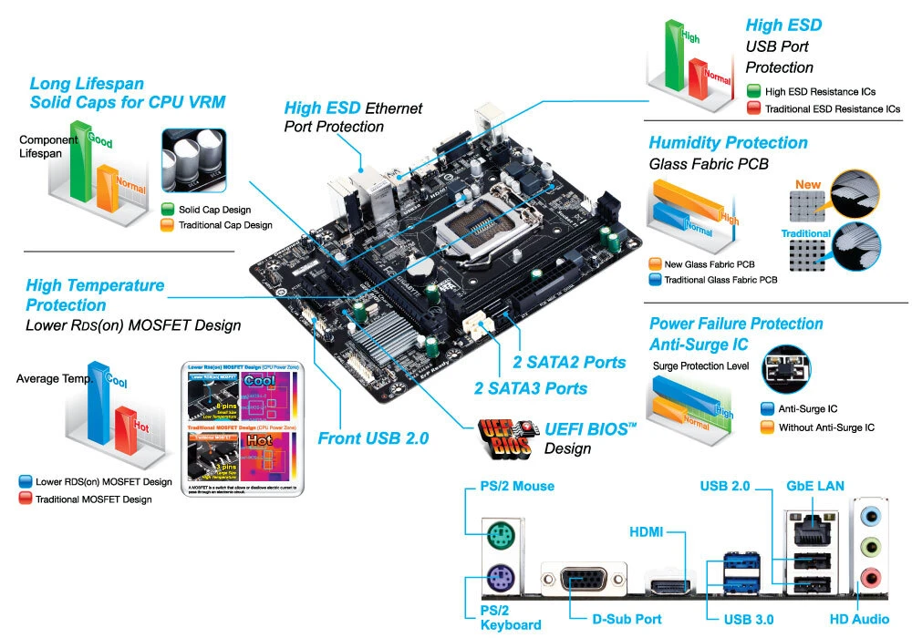 Gigabyte GA-H81M-H is a feature-packed, budget-friendly motherboard designed