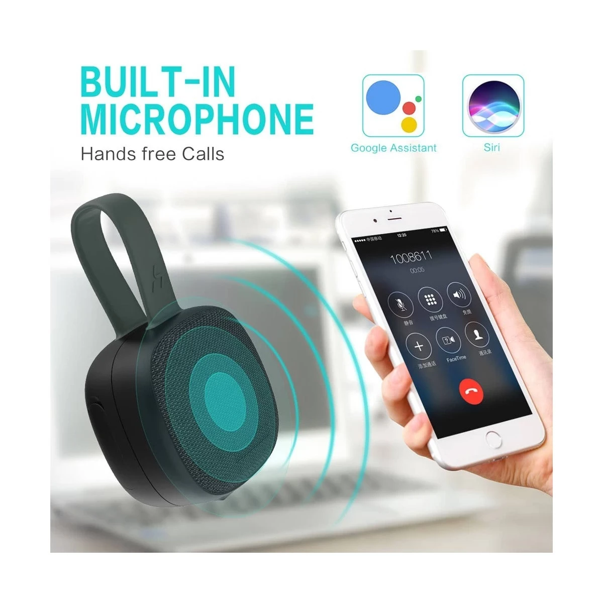 or calls. Its compact size, along with features like a built-in microphone
