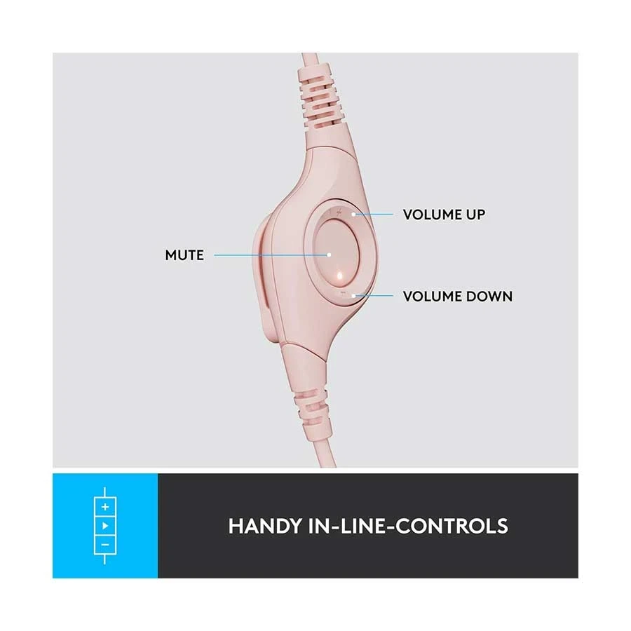 Cable allows freedom to move, Handy in-line controls, Logitech