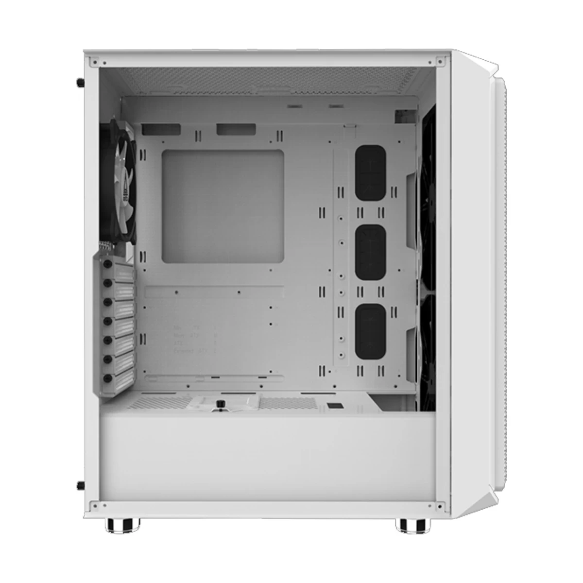 panel and a swivel tempered glass side window. This mid-tower supports E-ATX,