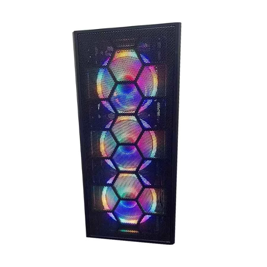 setups. Its tempered glass side panel and mesh front with RGB support