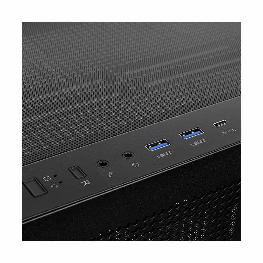 2 Type-C, and HD Audio ports. It supports up to 6 additional fan slots and