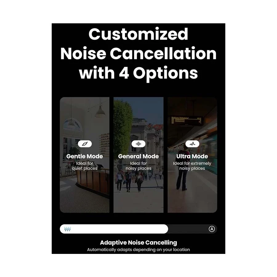 ANC algorithms to reduce ambient noise, making it ideal for busy