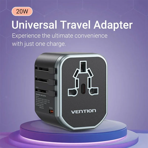Vention FJCB0 3-Port USB 20W Universal Travel Adapter