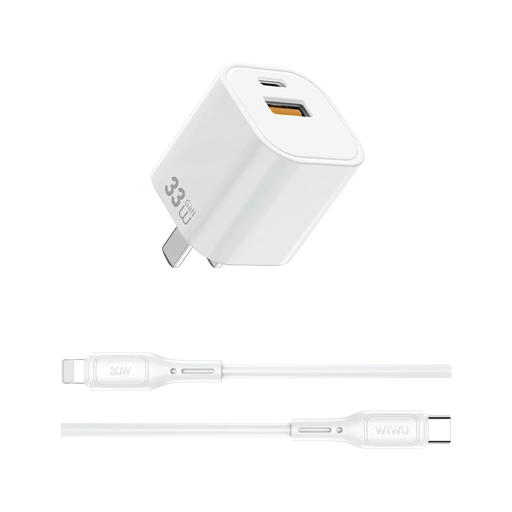 WiWU 33W GaN Fast Charger USB-C + QC3.0 Power Adapter