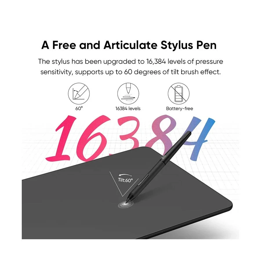 With 5080 LPI pen resolution and 16384 pressure levels, the battery-free stylus